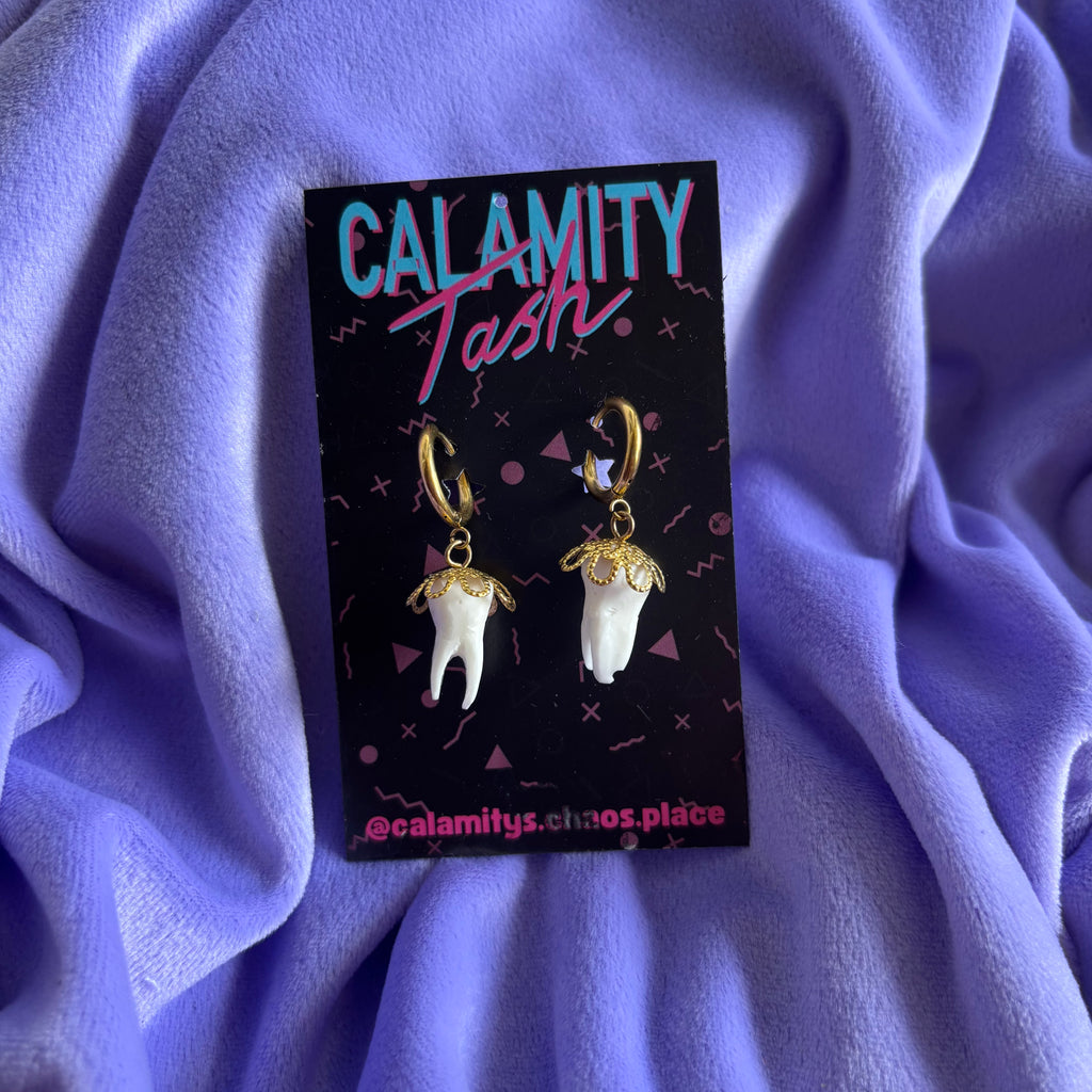 Stirling Silver Tooth Hoops Gold